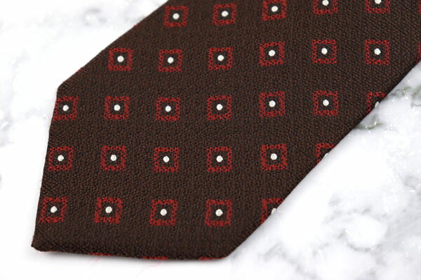 エルメネジルドゼニア Ermenegildo Zegna 世界最高峰ブランド スクエア 生地厚 伊製 シルク ドット柄 ブラウン シルク ブランド ネクタイ 送料無料 【中古】【美品】