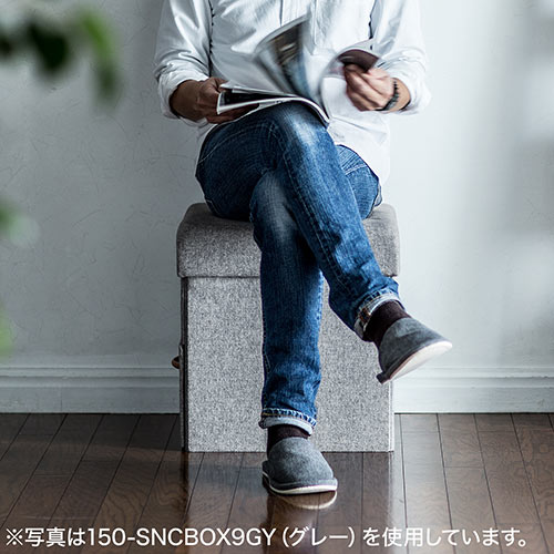 シンプルデザインと収納機能を備えたボックス型のスツールです。