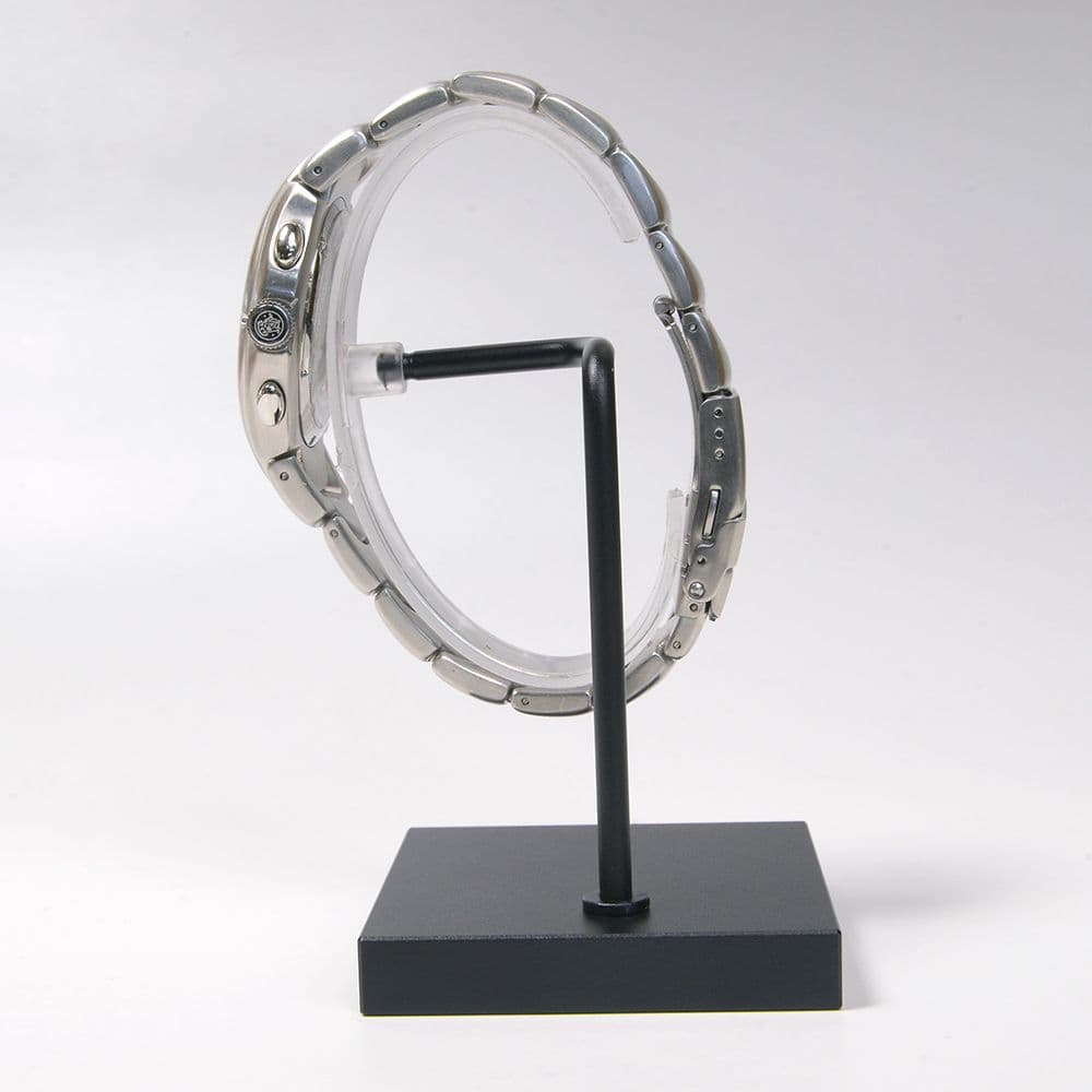 腕時計が宙に浮いたような状態で設置できるので、どの角度から見てもフォルムの鑑賞を妨げません。